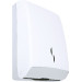 ABS-Kunststoff (Acrylnitril-Butadien-Styrol-Copolymer), weiß, recycelt. Wandmontage, abschließbar. Befüllbar mit C-Falz und Interfold-Papieren. Passende Falthandtücher Art.-Nr. 87098. Lieferung ohne Falthandtücher.