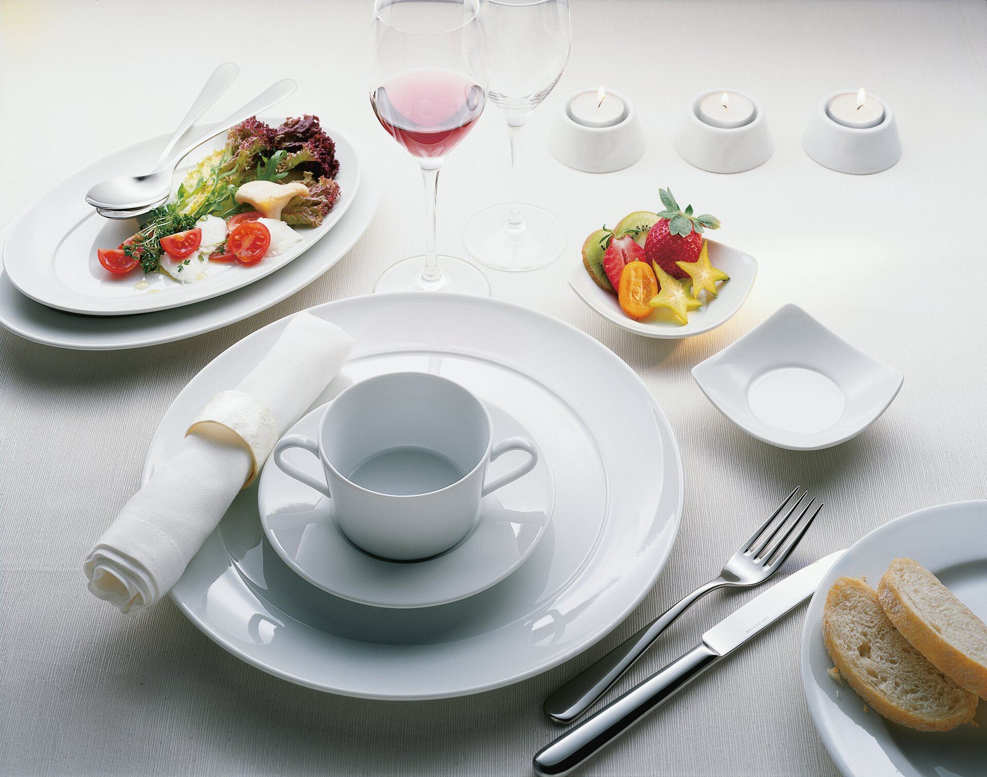 Klassische Eleganz – in einer klaren, zeitlosen Form. Der besondere Charme liegt in der Kombination aus runden und quadratischen Tellern und weich geschwungenen Hohlteilen. Ein anmutiger Purismus, der ganz unterschiedliche Ansprüche befriedigt.