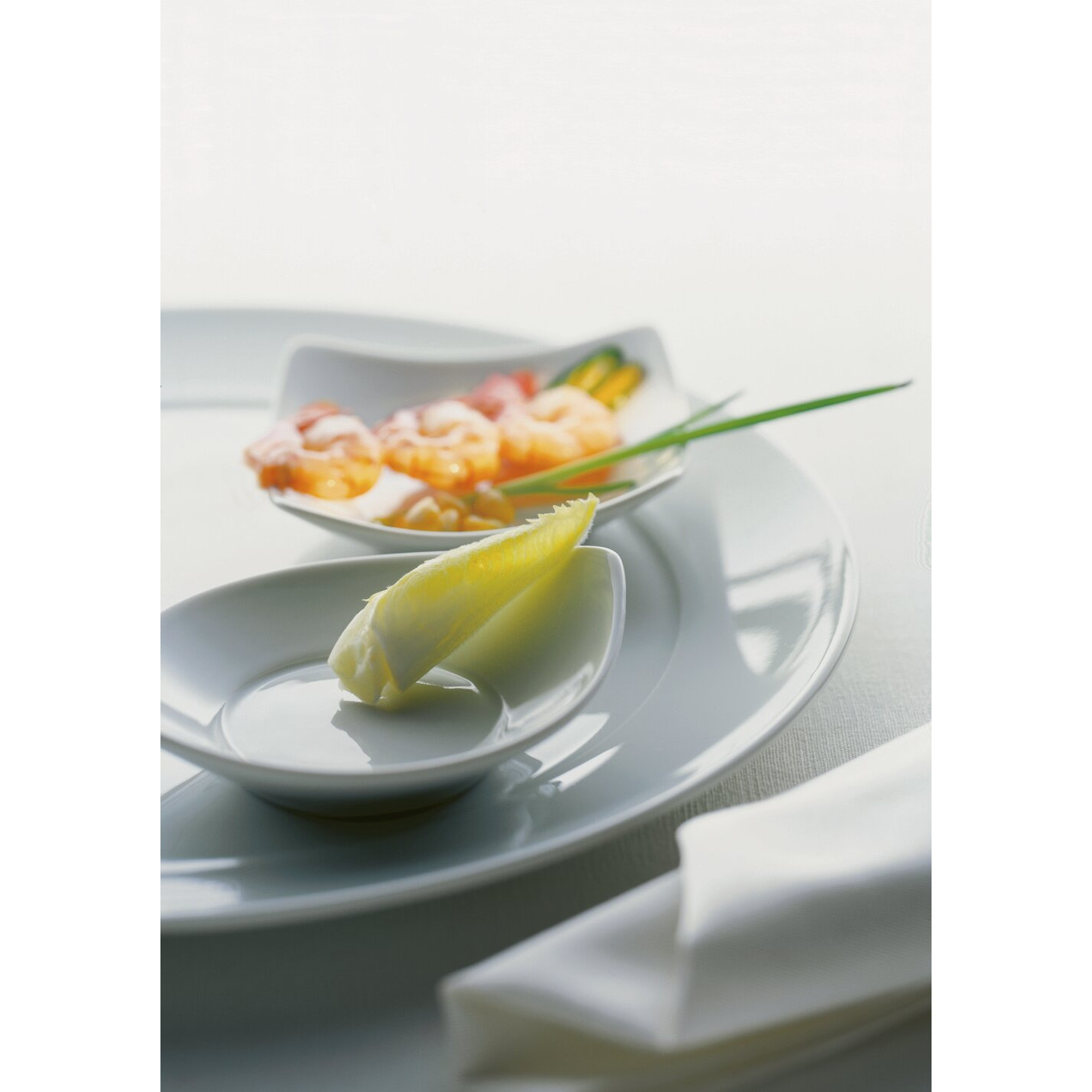 Klassische Eleganz – in einer klaren, zeitlosen Form. Der besondere Charme liegt in der Kombination aus runden und quadratischen Tellern und weich geschwungenen Hohlteilen. Ein anmutiger Purismus, der ganz unterschiedliche Ansprüche befriedigt.