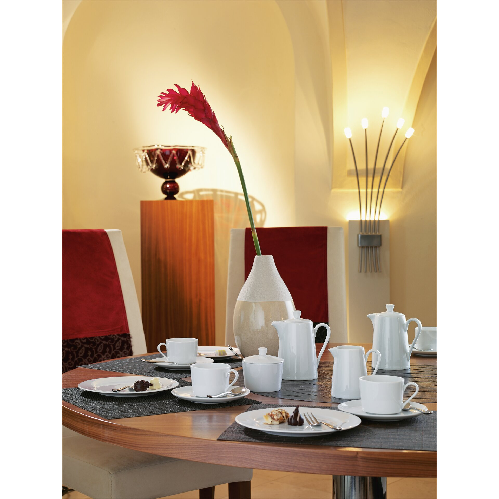 Klassische Eleganz – in einer klaren, zeitlosen Form. Der besondere Charme liegt in der Kombination aus runden und quadratischen Tellern und weich geschwungenen Hohlteilen. Ein anmutiger Purismus, der ganz unterschiedliche Ansprüche befriedigt.