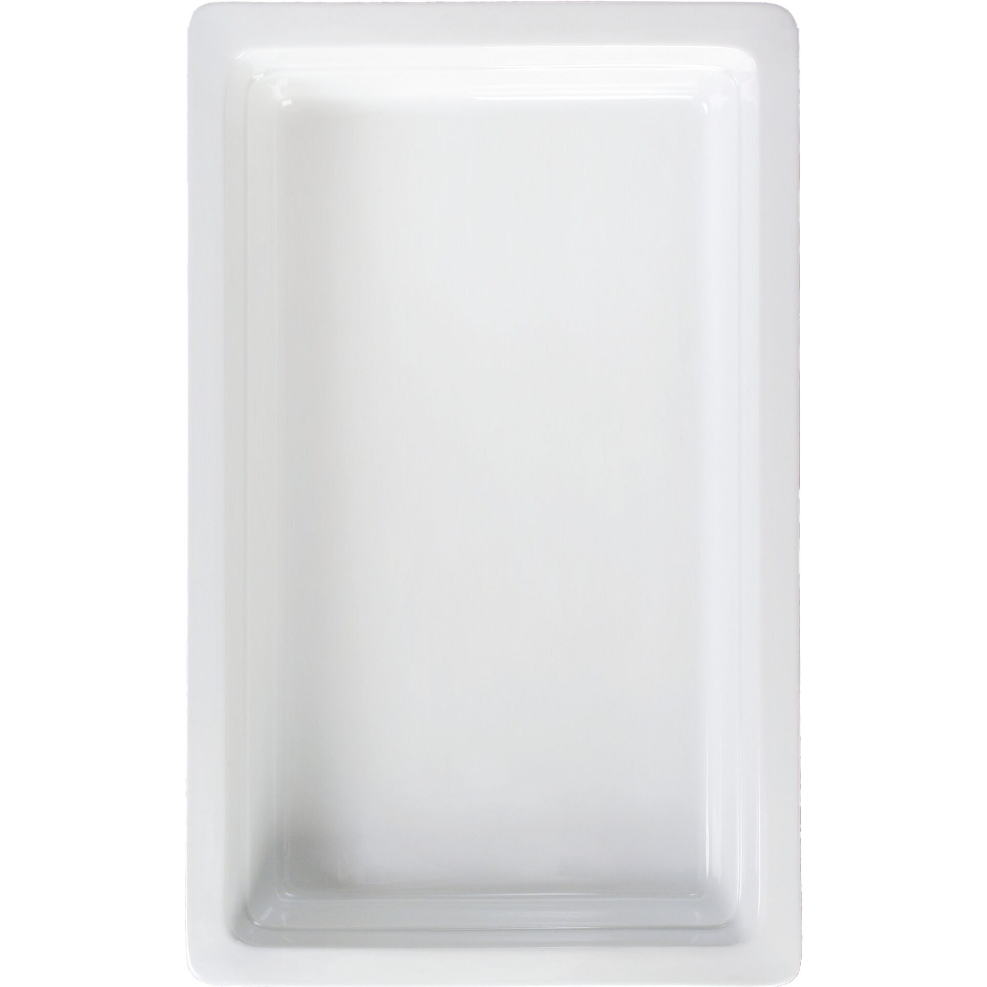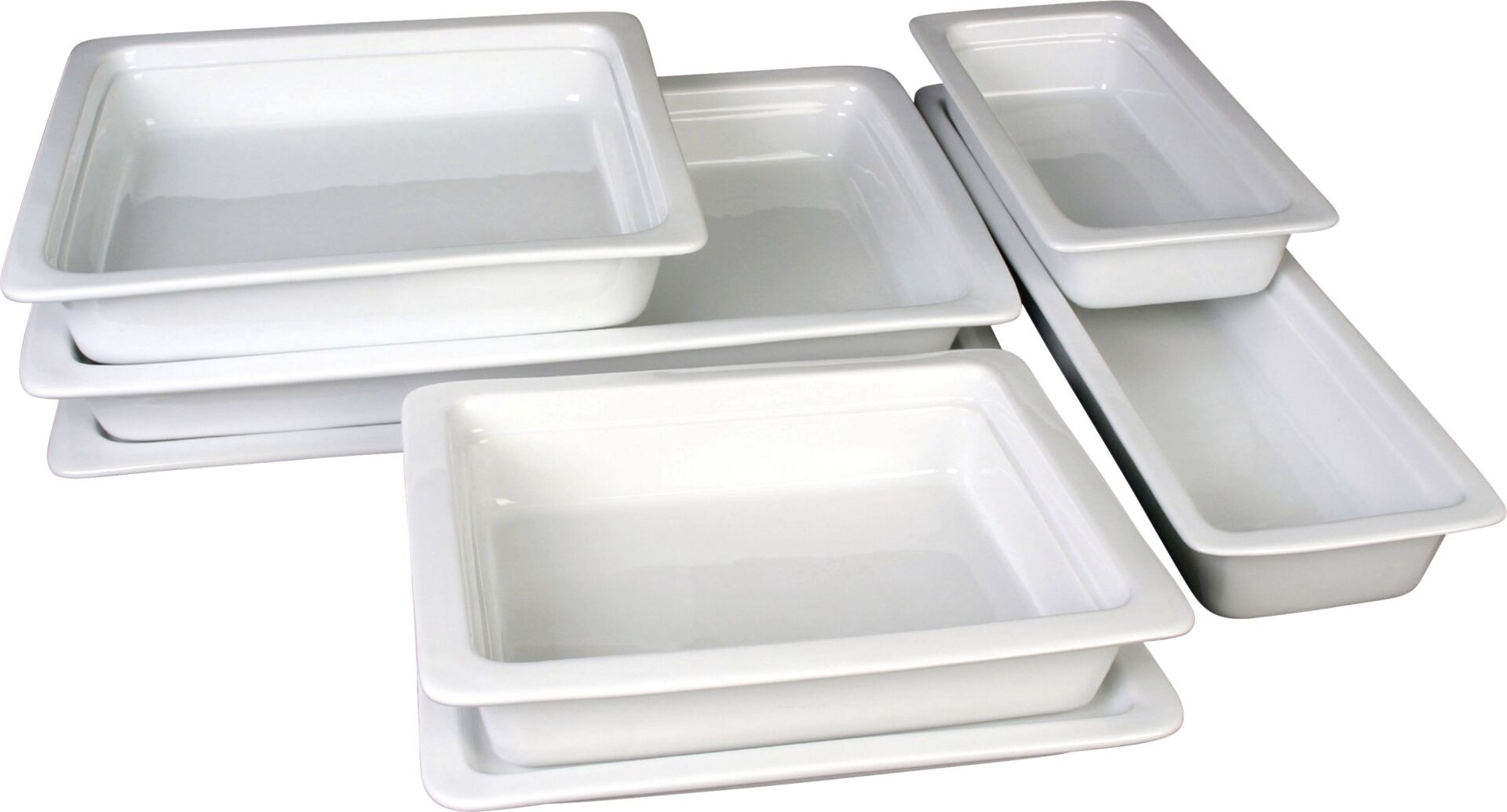Porzellan, weiß. Tiefe 65 mm. Temperaturbereich von -20°C bis 300°C. Nicht thermoschockresistent.