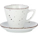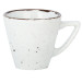 Porzellan. Grundfarbe weiß, Rand braun und Spiegel braun gesprenkelt. Mischsortierung. Spülmaschinengeeignet.
