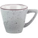 Porzellan. Grundfarbe grau (Farbverlauf bewusst unregelmäßig), Rand braun und Spiegel braun gesprenkelt. Mischsortierung. Spülmaschinengeeignet.