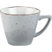 Porzellan. Grundfarbe grau (Farbverlauf bewusst unregelmäßig), Rand braun und Spiegel braun gesprenkelt. Mischsortierung. Spülmaschinengeeignet.
