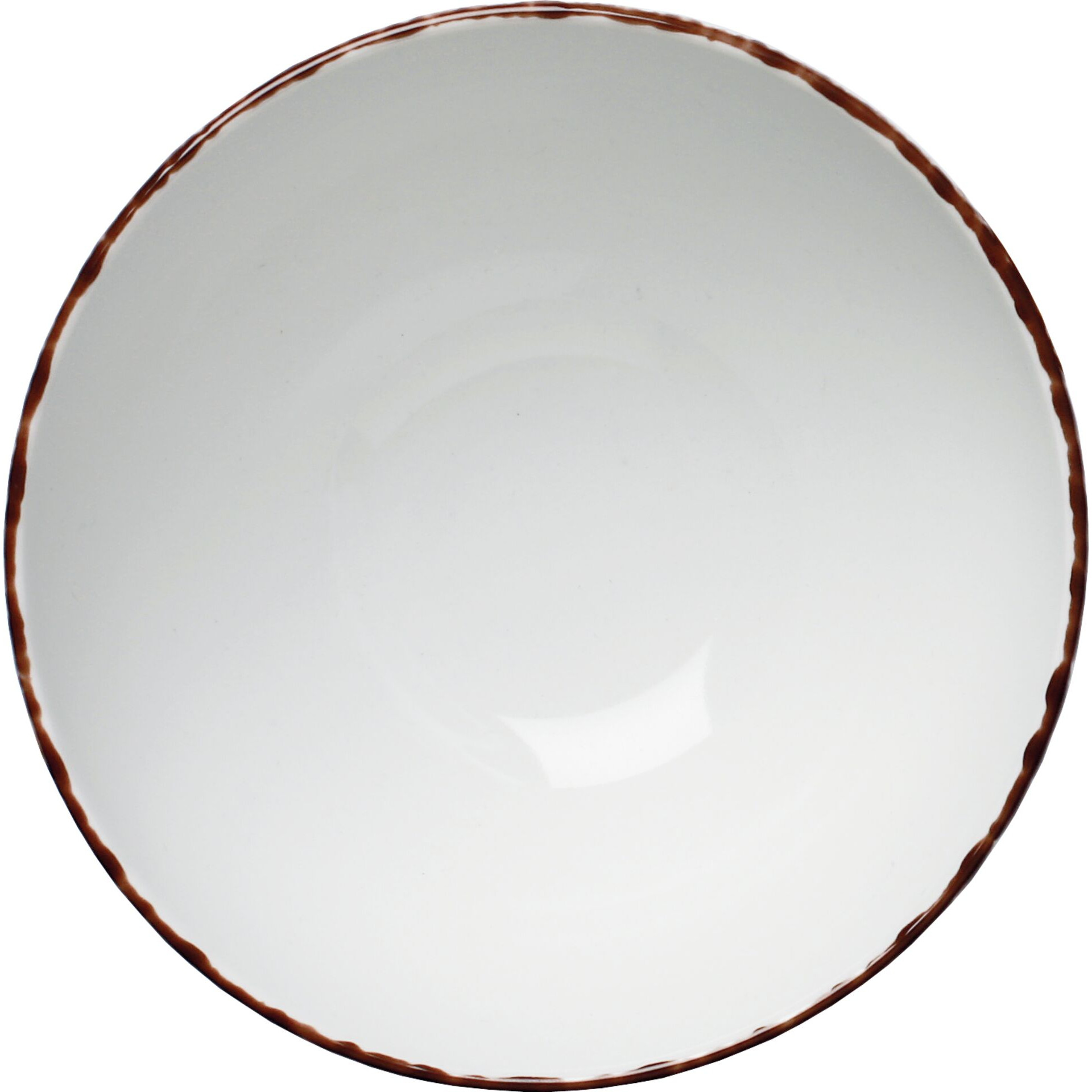 Porzellan. Grundfarbe weiß, Rand braun und Spiegel braun gesprenkelt. Mischsortierung. Spülmaschinengeeignet.