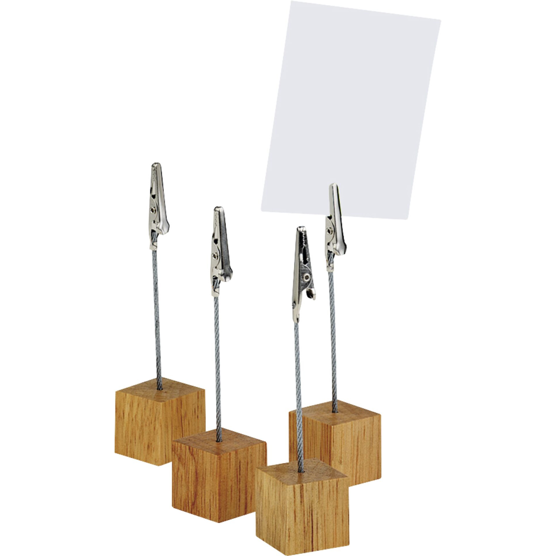 BxLxH in cm: 2,5x2,5x12 Holz, natur. Inkl. 20 Beschriftungskärtchen, weiß, neutral. Im 4er Pack.