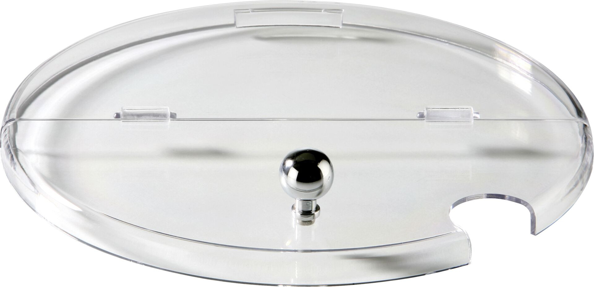 Ø in cm: 14 Hustenschutzdeckel passend für unsere Glasschalen Chef Ø14 und 23cm! Acryl, klar, aufklappbar, mit Edelstahlknopf und Löffelaussparung.