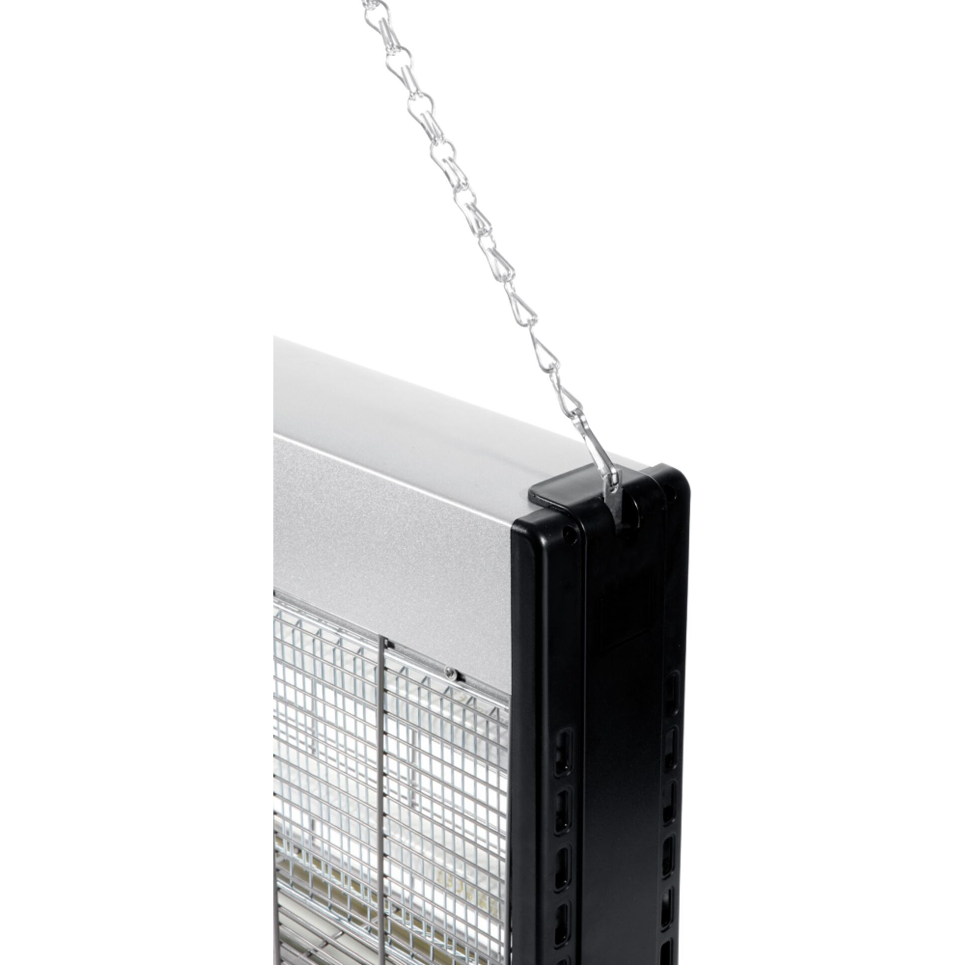 Elektronischer Insektenvernichter mit einem Gehäuse aus einer speziellen Aluminiumlegierung und feuerfestem ABS-Kunststoff. Einfache Reinigung durch herausnehmbare Schublade. 2 UV-A-Leuchtstoffröhren. Gitterspannung 2500 V. Anschlusswert 230 V. Als Decken- oder Standgerät einsetzbar. Nur zur Verwendung im Innenbereich.