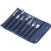 8-tlg. - inkl. Rolltasche. Set besteht aus: Kartoffelschäler 6308, Kartoffellöffel 6304.10, Juliennereißer 6312, Kartoffellöffel 2-seitig 6300, Apfelentkerner 6309, Ziseliermesser 6305, Butterroller 6306 und der Tasche aus Kunstleder.