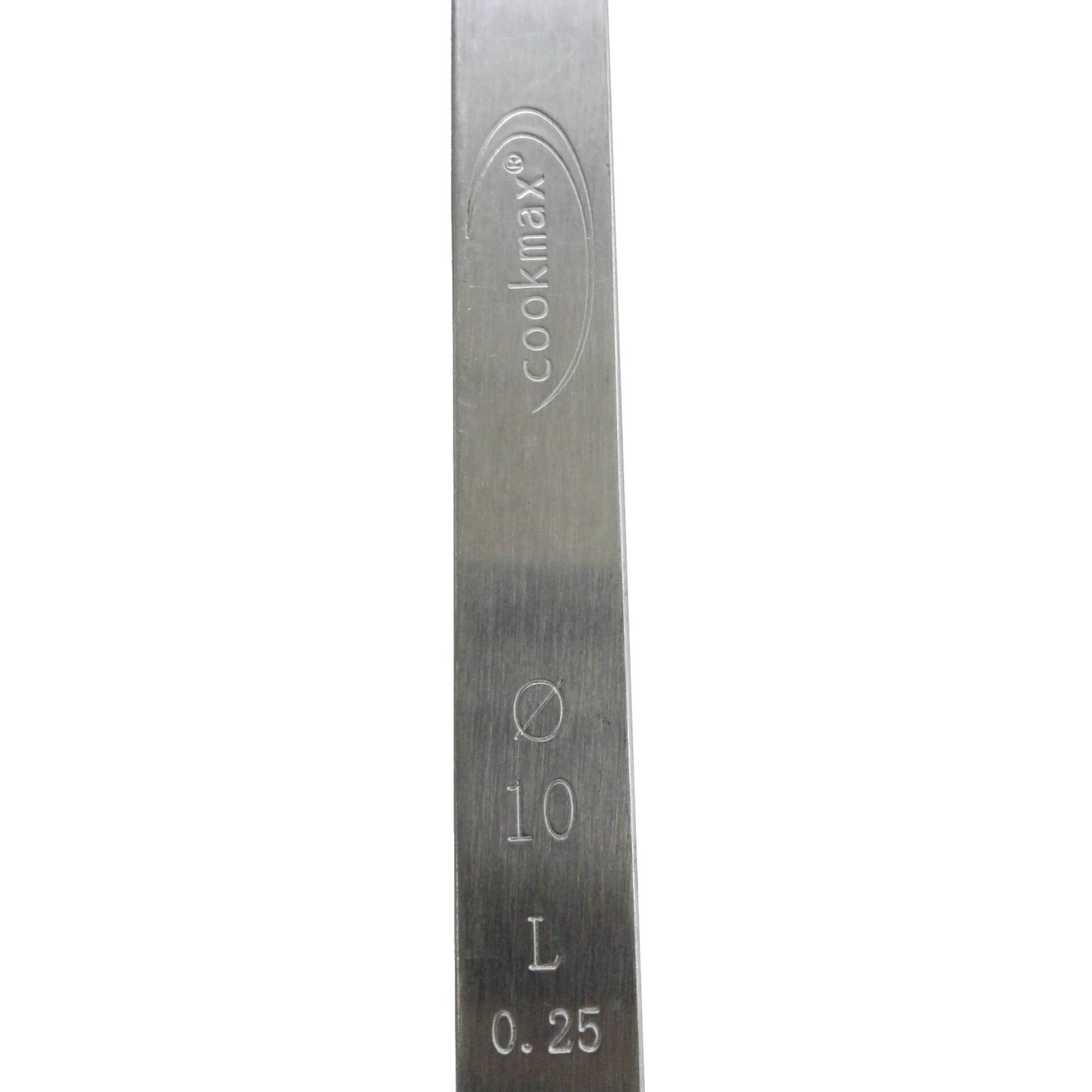 Mit Liter- und Ø-Angabe am Stiel. Edelstahl 18/10, matt poliert. Ø- und Liter-Angabe auf dem Stiel. Stiel mit abgerundeten Kanten. Stiellänge in cm: 31,5 Ø in cm: 6,5 Inhalt in L: 0,06
